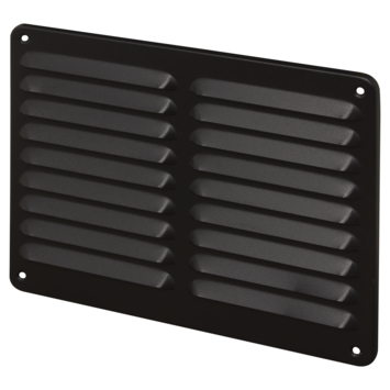 Het antraciete aluminium Sanivesk schoepenrooster heeft een afmeting van 24,5x19,5 cm. Dit rooster gebruik je om ventilatiekanalen af te dekken. Je monteert het ventilatierooster eenvoudig op buitenmuren, deuren of kozijnen. Zo zorgt het aluminium rooster voor natuurlijke ventilatie, maar het kan ook dienen als toevoer- of afvoerrooster van mechanische ventilatie. Door de vorm van het schoepenrooster kan regen niet inslaan en wordt het ventilatiekanaal niet nat. Dankzij de antraciete kleur past dit schoepenrooster van aluminium mooi op een donkere buitenmuur. Bovendien is het sterke aluminium rooster duurzaam en onderhoudsvrij. Eventueel kan je het ventilatierooster voorzien van vliegengaas om ook insecten te weren uit het ventilatiekanaal. De ventilatie van jouw woning blijft dan optimaal. Ook verkrijgbaar in andere afmetingen en kleuren.