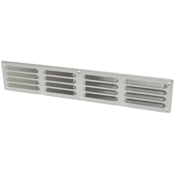 Het aluminium schoepenrooster heeft een afmeting van 49,5cm bij 9cm. Dit rooster gebruikt u om ventilatiekanalen af te dekken. U monteert het schoepenrooster eenvoudig op de binnen- of buitenmuur, deuren of keukenplinten. Zo zorgt het schoepenrooster voor natuurlijke toevoer van lucht, maar het kan ook dienen om gaten af te dekken. Door de vorm van de schoepen kan regen niet inslaan en wordt het ventilatiekanaal niet nat. Het rooster is stevig door de gestanste vorm en dik aluminium. Het is tevens duurzaam en onderhoudsvrij. Eventueel kunt u het rooster voorzien van vliegengaas om ook insecten te weren uit het ventilatiekanaal.
