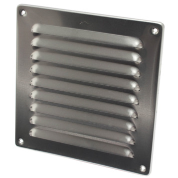 Het aluminium schoepenrooster heeft een afmeting van 19,5cm bij 19,5cm. Dit rooster gebruikt u om ventilatiekanalen af te dekken. U monteert het schoepenrooster eenvoudig op de binnen- of buitenmuur of deuren. Zo zorgt het schoepenrooster voor natuurlijke toevoer van lucht, maar het kan ook dienen om gaten af te dekken. Door de vorm van de schoepen kan regen niet inslaan en wordt het ventilatiekanaal niet nat. Het rooster is stevig door de gestanste vorm en dik aluminium. Het is tevens duurzaam en onderhoudsvrij. Eventueel kunt u het rooster voorzien van vliegengaas om ook insecten te weren uit het ventilatiekanaal.