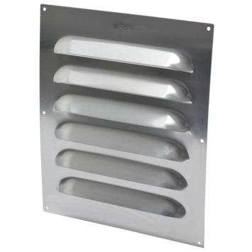 Het aluminium schoepenrooster heeft een afmeting van 25cm bij 30cm. Dit robuuste rooster gebruikt u om ventilatiekanalen af te dekken. U monteert het schoepenrooster eenvoudig op de binnen- of buitenmuur of deuren. Zo zorgt het schoepenrooster voor natuurlijke toevoer van lucht, maar het kan ook dienen om gaten af te dekken. Door de vorm van de schoepen kan regen niet inslaan en wordt het ventilatiekanaal niet nat. Het rooster is stevig door het extra dikke aluminium. Het is tevens duurzaam en onderhoudsvrij. Eventueel kunt u het rooster voorzien van vliegengaas om ook insecten te weren uit het ventilatiekanaal.