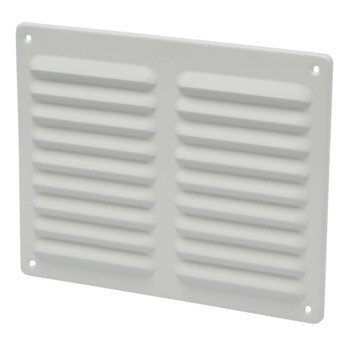 Het witte aluminium schoepenrooster heeft een afmeting van 24,5cm bij 19,5cm. Dit rooster gebruikt u om ventilatiekanalen af te dekken. U monteert het schoepenrooster eenvoudig op de binnen- of buitenmuur of deuren. Zo zorgt het schoepenrooster voor natuurlijke toevoer van lucht, maar het kan ook dienen om gaten af te dekken. Door de vorm van de schoepen kan regen niet inslaan en wordt het ventilatiekanaal niet nat. Het rooster is stevig door de gestanste vorm en dik aluminium. Het is tevens duurzaam en onderhoudsvrij. Eventueel kunt u het rooster voorzien van vliegengaas om ook insecten te weren uit het ventilatiekanaal.