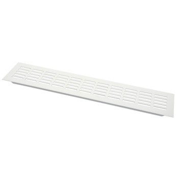 De aluminium witte ventilatiestrip heeft een afmeting van 40x8cm. De ventilatiestrip kunt u als deurrooster, radiatorombouw of vensterbankrooster gebruiken. Daarnaast kunt u de aluminium strip monteren in keukenplinten voor het ventileren van inbouwapparatuur, zoals de koelkast. Het product is voorzien van inbouwstrips aan de binnenzijde om deze met tape vast te zetten in de plint. De ventilatiestrip is sterk en corrosiebestendig door het extra dikke geanodiseerde aluminium.