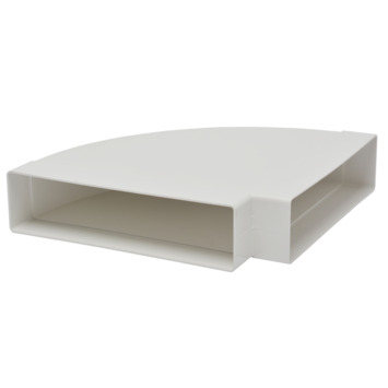 Vlakkanaal 220x55mm bochtstuk horizontaal. 220x55mm correspondeert met buisdiameter 125mm. Een vlakkanaal gebruikt u om bijvoorbeeld als afvoerkanaal vanaf een afzuigkap naar buiten, maar ook ventilatoren kunnen door middel van een vlakkanaal worden gekoppeld. De rechthoekige vorm maakt het gemakkelijk om deze kanalen weg te werken. De luchtbuis van pvc is bestand tegen een temperatuur van maximaal 80ºC. Voor het aanleggen van dit vlakkanaal vindt u in het assortiment verschillende hulpstukken, zoals verbindingsstukken en afdekplaten.