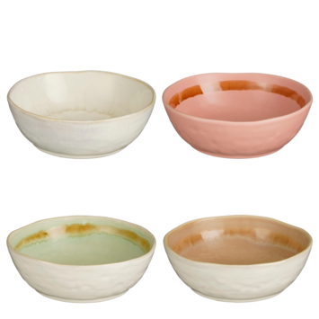 Voeg een vleugje kleur toe aan je serviescollectie met deze kom. Gemaakt van steengoed en verkrijgbaar in de kleuren groen, beige, roze en wit. In de kom zit een donkerkleurige cirkel verwerkt die een leuke touch aan het schaaltje geeft - schattig! De hoogte van de kom is 5,5 cm en de diameter is 14 cm.