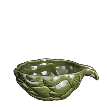 Deze groene schaal heeft de vorm van een blad en kan op verschillende manieren gebruikt worden. Hij staat gewoon mooi als decoratiestuk in de woonkamer, maar is ook ideaal om in de keuken te gebruiken. De schaal is gemaakt van aardewerk en heeft een fijne en gedetailleerde afwerking. Met een prettige afmeting van H7 x ø14,5 cm is dit opvallende exemplaar niet te missen.