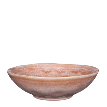 Rustiek en robuust; zo moet het servies omschreven worden. Geen wit porselein met saaie volmaakte lijnen, maar handgemaakte producten in neutrale tinten. Elk met een eigen, authentieke look die past bij puur genieten. Dat geldt ook voor deze schaal met een diameter van 30,5 cm. Ideaal om eten op te serveren. De keramieken schaal kan in de magnetron worden opgewarmd tot 180°C en na gebruik in de vaatwasser worden gezet. Door de roze kleur past de schaal goed bij andere serviesstukken. Of combineer hem met andere artikelen uit de serie en maak het servies compleet.