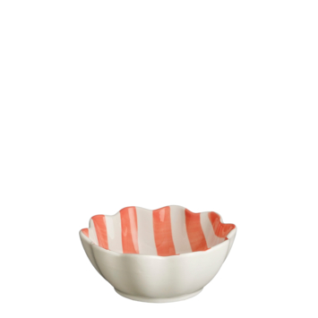 Voeg extra flair toe aan je tafelsetting met de roze-wit gestreepte kom, afgewerkt met subtiele boogjes in de rand. Het schattige schaaltje is gemaakt van steengoed en is bestend tegen de vaatwasser en magnetron. Hierdoor is hij erg geschikt voor dagelijks gebruik. Hij heeft een hoogte van 5 cm en een diameter van 12,5 cm.