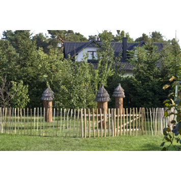 Dit schapenhek van onbehandeld hazelaarhout is 90 cm hoog en 500 cm lang. Het wordt geleverd als rol en is eenvoudig te plaatsen als natuurlijke omheining in je tuin. Dankzij de rustieke uitstraling past het perfect in een landelijke omgeving. Combineer het hek met een bijpassende poort van 90 x 100 cm voor een stijlvol en samenhangend geheel.