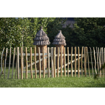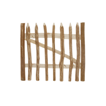 De poort voor het schapenhek is gemaakt van onbehandeld hazelnoot en is 90 cm hoog, 100 cm breed en 8 cm diep. De poort bestaat uit 2 horizontale latten, 1 schoor en 8 gepunte kastanje planken. De poort is aan elkaar geschroefd met schroeven. De tuinpoort heeft 2 gehalveerde latten aan beide zijkanten met een diameter van 8 cm. De tuinpoort wordt exclusief hengen, duimen en hang- en sluitwerk geleverd. De tuinpoort hazelnoot onbehandeld heeft een bijpassend tuinhek op rol 90 x 500 cm. Het combineren van deze 2 artikelen zorgt voor een mooi geheel.