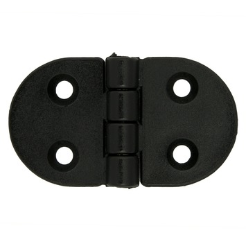 Het scharnier 75 x 40 mm is gemaakt van zwart lichtgewicht kunststof en heeft een afmeting van 75 bij 40 millimeter, Je kunt het scharnier door middel van 4 schroeven gemakkelijk bevestigen. De kunststof scharnier is ideaal voor toepassingen in een vochtige omgeving en is dus zeer geschikt voor luiken en kastdeurtjes op je boot.