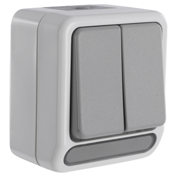 Met deze grijze Schneider Electric Merten Contura opbouw serieschakelaar kun je twee verschillende lichtpunten (bijvoorbeeld het lichtpunten garage- en buitenlamp) vanaf één plaats in- en uitschakelen. Deze serieschakelaar is spatwaterdicht (beschermingsklasse IP44), dus geschikt voor vochtige ruimtes en buitengebruik. Maximaal aansluitvermogen 2300 watt. Een serieschakelaar is niet te gebruiken als wisselschakelaar. Hiervoor gebruik je de wissel-wisselschakelaar.