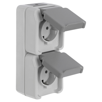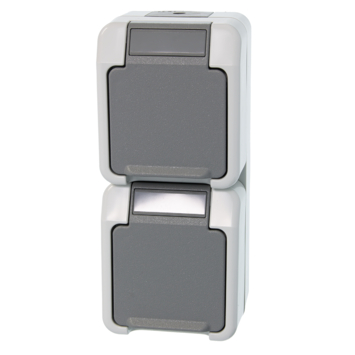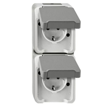 Deze Schneider Electric Merten dubbele stopcontact met randaarde is spatwaterdicht (beschermingsklasse IP44), dus geschikt voor vochtige ruimtes en buitengebruik. Deze grijze stopcontact heeft een maximaal belastbaar vermogen 3680 watt.