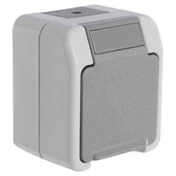 De Schneider Electric Aquastar spatwaterdicht Stopcontact Enkel RA is geschikt voor gebruik in vochtige ruimtes of buiten. Dit enkele stopcontact heeft randaarde, wat extra bescherming biedt tegen oververhitting en kortsluiting. Dankzij de IP44-beschermingsklasse is het spatwaterdicht, zodat het bestand is tegen regen of vochtige omstandigheden. Het stopcontact is grijs van kleur en heeft een maximaal belastbaar vermogen van 3680 watt, waardoor je er veilig elektrische apparaten op kunt aansluiten.