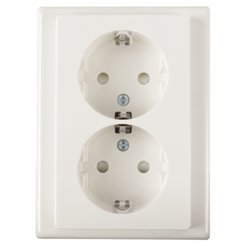 Witte Schneider Electric Merten System M dubbele stopcontact met randaarde. Maximaal aansluitvermogen 3680 watt.