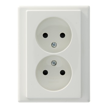Witte Schneider Electric Merten System M dubbele stopcontact. Maximaal aansluitvermogen 3680 watt.
