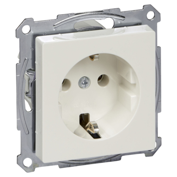 Witte Schneider Electric Merten System M stopcontact met randaarde. Maximaal aansluitvermogen 3680 watt.