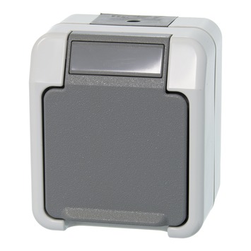 Deze Merten stopcontact met randaarde is spatwaterdicht (beschermingsklasse IP44), dus geschikt voor vochtige ruimtes en buitengebruik. Deze grijze stopcontact heeft een maximaal belastbaar vermogen 3680 watt.