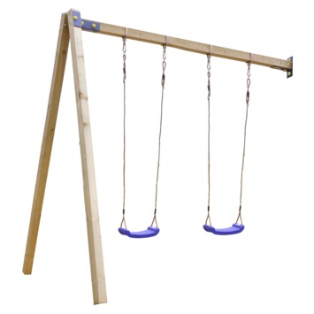 De schommelaanbouw 2-persoons met schommels is universele schommelaanbouw. Je kunt deze schommel combineren met bijvoorbeeld het speeltoestel Kapitein maar je kunt hem ook tegen een buitenmuur bevestigen zoals een garage- of schuurmuur. Het grondoppervlak van deze schommel is ca. 250x320x170 centimeter (hxbxd). De schommelaanbouw is opgebouwd uit houten palen van ca. 88x88 millimeter dikte. De schommel wordt geleverd als een op maat gezaagd pakket inclusief bevestigingsmateriaal, 2 schommels en de bijbehorende grondankers. De schommels voldoen aan het CE keurmerk.
