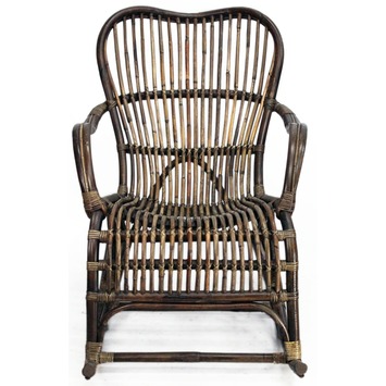 Schommelstoel rotan naturel is 86 centimeter hoog, 56 centimeter breed en 95 centimeter diep.