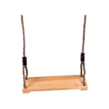 Dit schommelzitje is gemaakt van hout en heeft een zitplank van circa 42 centimeter breed en 15 centimeter diep. De stevige schommel is voorzien van twee ringen aan de bovenkant, waarmee de schommel gemakkelijk aan een speeltoestel kan worden bevestigd. De lengte van het touw is aan te passen op de gewenste hoogte van de schommel. Gebruik voor het bevestigen twee schommelhaken (exclusief).