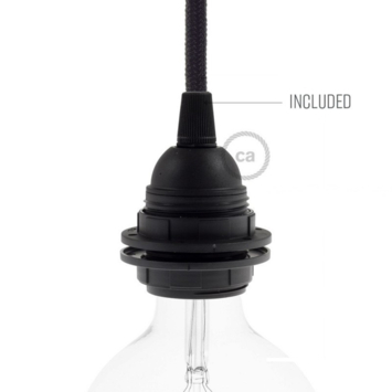 Deze kunststof E27 fitting wordt gebruikt om een wand-, tafel- of plafondlamp te monteren die is uitgerust met een lampenkap. Hij is namelijk voorzien van een schroefdraad aan de buitenzijde. Dit kunststof is lichter dan bakeliet en heeft een matte afwerking. Deze E27 fitting voor gebruik met een lampenkap wordt geleverd met trekontlasting en is handig in de volgende situatie: - je gebruikt een lamp met een lampenkap - je wilt een gewone eenvoudige fitting voor een slimme prijs Diameter : 40 mm Hoogte: 54 mm Diameter van de schroefringen: 56 mm
