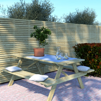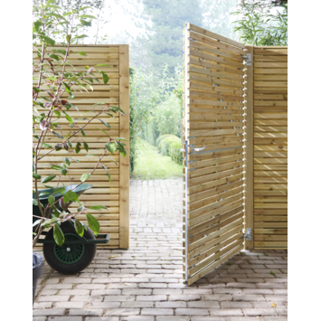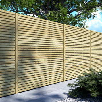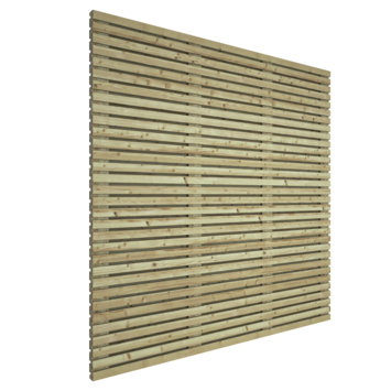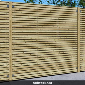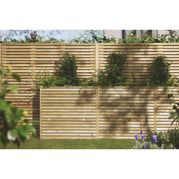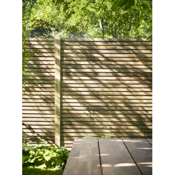 Geimpregneerd grenenhout is de basis van deze schutting, wat de levensduur aanzienlijk verlengt. Hoewel direct behandelen met een tuinbeits niet nodig is, is het aan te raden om het hout na ongeveer 5 jaar te behandelen voor kleurbehoud en extra bescherming.Als natuurproduct kan hout krimpen of uitzetten door weersomstandigheden, en het kan ook hars bevatten of knoesten hebben die in de zomer kunnen uitzetten. Na verloop van tijd kan het hout vergrijzen, wat geen invloed heeft op de levensduur. Houd rekening met deze natuurlijke eigenschappen bij het onderhouden van je schutting.