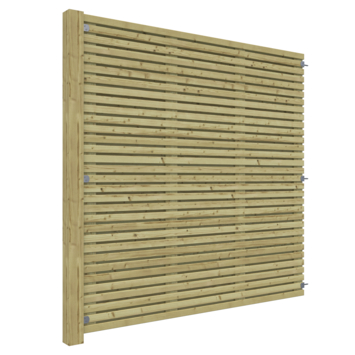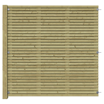 Combineer het scherm met de bijpassende tuindeur Andalusië, die beschikbaar is in zowel horizontale als verticale uitvoeringen. Het scherm is gemaakt van geschaafd grenenhout en vacuümdruk geïmpregneerd met Tanalith E, wat de levensduur verlengt tot 10-15 jaar en bescherming biedt tegen oppervlakte-schimmels.