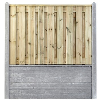 Deze schutting van topkwaliteit is een aanwinst voor iedere tuin. De schutting is opgebouwd uit een combinatie van rotsmotief beton in de kleur grijs met een houten scherm van grenenhout. Doordat het hout niet in contact staat met de grond is dit de meest duurzame schutting uit het KARWEI assortiment.Een standaard element heeft een hoogte van ca. 200 cm en een breedte van ca. 200 cm, maar je bestelt deze schutting in een veelvoud van 50 cm met een minimale afname van 4 meter(8 stuks).