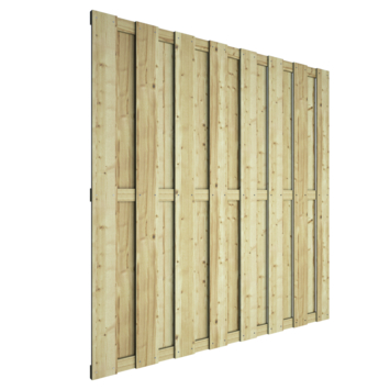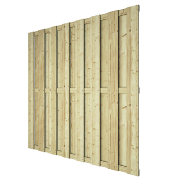 Met een afmeting van ca. 180 bij 180 cm past deze schutting perfect in elke tuin. Het tuinscherm bestaat uit 15 geschaafde planken, elk ca. 13 mm dik en ca. 135 mm breed. De planken staan dicht bij elkaar, wat zorgt voor voldoende privacy. De schutting is ook verkrijgbaar in een toogmodel en de bijpassende poort is eveneens te vinden in het assortiment van Karwei.Hout is een natuurproduct