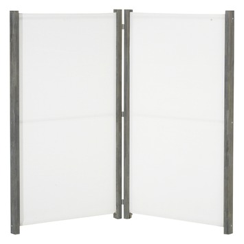 Het tuinscherm Luca grijs/wit is een ideale afschermmogelijkheid voor in je tuin. Het grijs hardhouten frame en het witte doek van textiel zorgen voor een neutrale maar stoere uitstraling in je tuin. Met afmetingen van 180x150 centimeter is het scherm geschikt om middelgrote stukken af te schermen. Kies dus van het tuinscherm Luca grijs/wit, een ideaal scherm voor in je tuin of op je balkon.