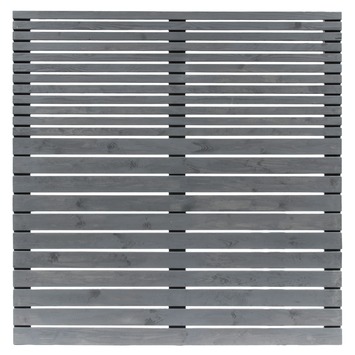 Deze schutting uit de Wave serie is gemaakt van grijs geschilderde houten latten. Door de afwisseling in de dikte van deze latten heeft deze schutting een erg mooie uitstraling. Deze schutting heeft een afmeting van 180 bij 180 cm. Deze schutting kan erg goed worden gecombineerd met de overige artikelen uit serie Wave zoals de bloembak Wave, kliko ombouw Wave en de haardhoutberging Wave. Houd er bij deze schutting rekening mee dat er maar 1 zichtzijde is. De achterzijde van de schutting bestaat uit 3 verticale latten.