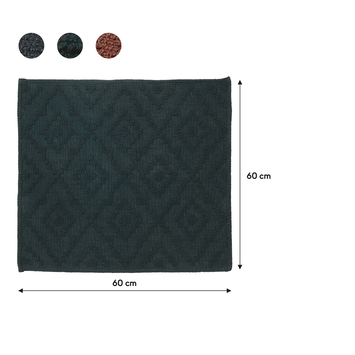 Een badkamer met wereldse invloeden? Check! De badmat van Sealskin Aztec zorgt voor kleurrijke vibes in je casa. De donkergroene kleur met grafische patronen mixen hier goed met elkaar.