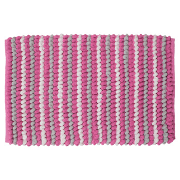 Breng wat kleur in je badkamer met de kleurrijke serie Bright badmatten. Deze mat is uitgevoerd in de kleuren wit, grijs en roze. De mat is gemaakt van een extra zachte polyester en mag in de wasmachine en droger.