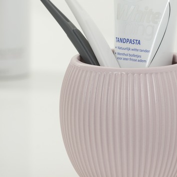 De Sealskin Beker Convex Lichtroze heeft een reliëf in de vorm van verticale gebogen lijnen. Natuurlijk kan deze beker ook als tandenborstelhouder gebruikt worden of om scheermesjes en oogpotloden op te bergen.
