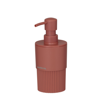 Breng stijl en functionaliteit samen met de Sealskin Brave zeepdispenser. Dit slimme staande model biedt niet alleen een praktische oplossing voor het doseren van zeep, maar zorgt ook voor een frisse uitstraling in je badkamer. De warme donkerroze kleur en matte afwerking geven een moderne look die perfect aansluit bij hedendaagse interieurs. Gemaakt van vochtbestendig kunststof, is het een uitstekende keuze voor gebruik in vochtige omgevingen. Het geribbelde oppervlak biedt een comfortabele grip, zodat je altijd de juiste hoeveelheid zeep kunt doseren. Een stijlvolle toevoeging die je badkamer een upgrade geeft.