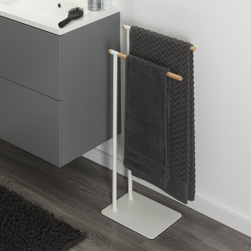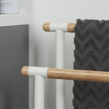 Dit Sealskin dubbel handdoekrek biedt je de perfecte oplossing voor het ophangen van handdoeken, met ruimte voor meerdere handdoeken tegelijk. Dankzij de slimme dubbele standaard heb je altijd een handdoek binnen handbereik, ideaal na een verfrissende douche of ontspannend bad. Het stijlvolle ontwerp met witte metalen stangen en mooie houten accenten geeft je badkamer een moderne en warme uitstraling. Het monteren is simpel en kan snel gedaan worden met de bijgeleverde handleiding. Dit handdoekrek is niet alleen praktisch, maar ook een echte eyecatcher in je badkamer.