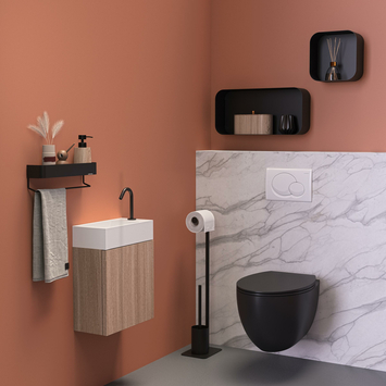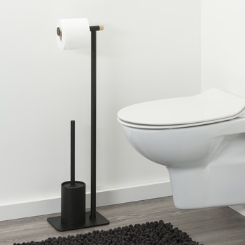 Een toiletborstel én wc rol allemaal op hetzelfde standaard? Het is mogelijk met de Sealskin Brix Toiletbutler Zwart Metaal. Dat maakt dit ook zo'n enorm handige toiletaccessoire. Natuurlijk misstaat deze butler ook niet in de badkamer als je daar toevallig een toilet hebt staan. Naast de functionaliteiten van deze toiletrolhouder is hij ook nog eens enorm stijlvol. Dat komt door de prachtige houten accenten. Het gehele standaard is 71,5 cm hoog, 15 cm breed en 20 cm diep. Wel belangrijk is dat je vrij regelmatig een vochtige doek langs de butler haalt. Op die manier zul je er veel langer plezier van hebben. Los van het feit dat er standaard 1 jaar garantie op zit natuurlijk. Monteren is ook geen probleem! Dat kun je eenvoudig zelf doen dankzij de bijgeleverde montagehandleiding.