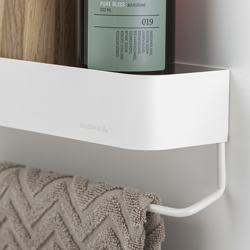 Met het Sealskin Brix wandrek in wit creëer je extra opbergruimte met een modern design. De geïntegreerde rails onder de plank maakt het mogelijk om handdoeken op te hangen, wat ruimte bespaart en zorgt dat alles binnen handbereik blijft. Het metalen rek is eenvoudig te monteren en helpt bij het overzichtelijk houden van je spullen. Dit wandrek biedt een praktische en stijlvolle oplossing voor elke ruimte.