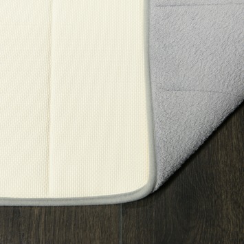 Fluweelzachte, antislip foam badmat, die zacht en warm aanvoelt en niet oprimpelt. Praktisch en fraai om te zien.