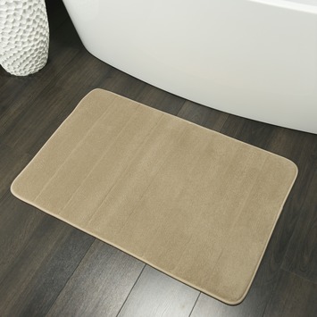 De Sealskin Comfort Foam badmat zand 60x90 cm is gemaakt van polyester en bestaat grotendeels uit memory foam dat zorgt voor extra comfort en zachtheid onder je voeten. Het memory foam is een soort schuim dat zijn vorm weer snel terug krijgt en vocht goed absorbeert. Omdat de kleur zand tijdloos is, zorgt deze badmat voor een neutrale en klassieke uitstraling in de badkamer. De Comfort Foam badmat zand is 60 bij 90 centimeter en is daarom geschikt voor iedere gangbare badkamer. Deze badmat is goed wasbaar op 30 graden en kan gedroogd worden in de wasdroger. Ook op vloerverwarming is de Comfort Foam badmat zand een pretje. De badmat is voorzien van een anti-sliplaag aan de onderzijde waardoor de mat goed op zijn plek blijft liggen.