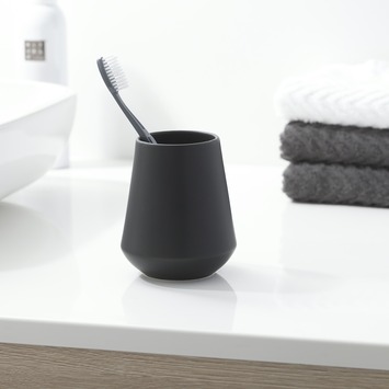 Met de Sealskin Beker Conical Porselein Zwart voeg je een stijlvol accent toe aan je badkamer of toilet. Deze beker, gemaakt van hoogwaardig zwart keramiek, is niet alleen een blikvanger, maar ook uiterst functioneel. Hij biedt voldoende ruimte voor je tandenborstels of make-upkwasten en zorgt voor een nette uitstraling. Dankzij de conische vorm staat hij stevig op elke ondergrond en het gladde oppervlak maakt schoonmaken een fluitje van een cent. Zijn eigentijdse design maakt hem een ideale keuze voor de moderne doe-het-zelver die waarde hecht aan zowel esthetiek als functionaliteit.