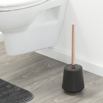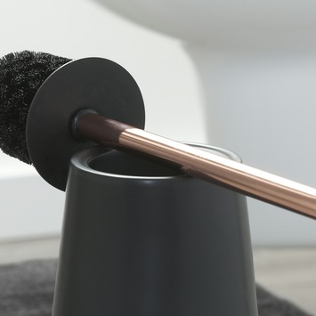 De Sealskin toiletborstelhouder Conical in zwart porselein is een echt statementstuk voor je badkamer of toilet. Dankzij het strakke, kegelvormige ontwerp past deze houder perfect in een moderne inrichting. Het keramiek voelt stevig aan en geeft een luxe uitstraling, terwijl de bronzen details een subtiele, elegante touch toevoegen. De toiletborstel houder is niet alleen mooi, maar ook praktisch. Hij is eenvoudig te reinigen en zorgt ervoor dat je toiletborstel altijd op een nette manier opgeborgen is. Maak je badkamer compleet met deze stijlvolle en functionele toiletborstelhouder.