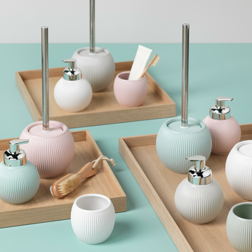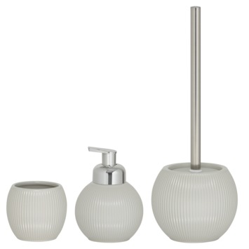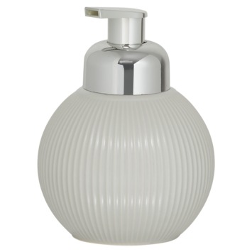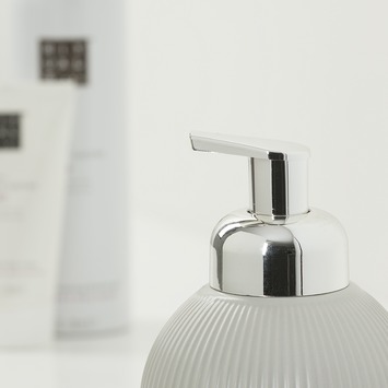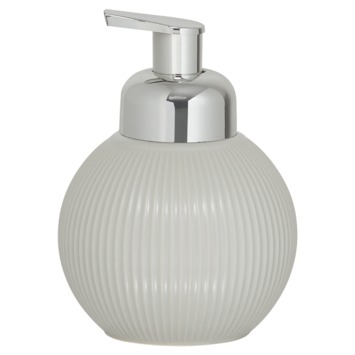 De Sealskin zeepdispenser Convex in lichtgrijs brengt een Scandinavische flair naar je badkamer. Dankzij het stijlvolle reliëf met verticale gebogen lijnen ziet deze dispenser er niet alleen mooi uit, maar is hij ook bijzonder praktisch. Het handmatig te bedienen pompje zorgt ervoor dat je eenvoudig je favoriete zeep kunt doseren. De dispenser is navulbaar, wat betekent dat je niet telkens nieuwe dispensers hoeft aan te schaffen. Gemaakt van keramiek in combinatie met een plastic pompje, kan je deze dispenser eenvoudig schoonmaken met een vochtig doekje, zodat hij altijd netjes blijft. Een ideale aanvulling voor diegenen die stijl en functionaliteit waarderen.