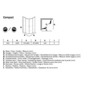 Mooie cabine, de handleiding is niet heel eenvoudig, (alleen tekeningen).tekst uitleg stappen montage zou helpen.Let op Radius is 55, staat wel op de tekening maar is niet goed benoemd bij uitleg. Doorgegeven aan Karwei dit ook te vermelden, maar nog niet gebeurd.
