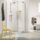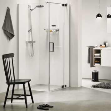 Custom is uitgevoerd met 6mm helder veiligheidsglas en zilverhoogglans afwerking. Standaard geleverd met chromen en witte accenten. Custom douches zijn eenvoudig te installeren en zeer nauwkeurig af te stellen, ook ná installatie. De Swingdeur heeft een vast deel, zo draai je om bijvoorbeeld een gemonteerde radiator heen.