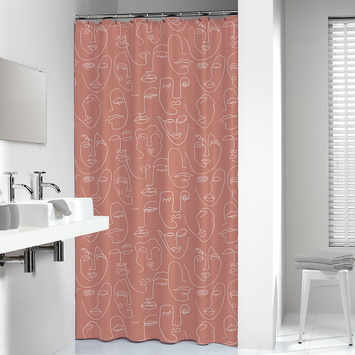 Ik ben erg blij met dit prachtige douchegordijn. De kleur is een mooie donkere zachte roze met prachtige abstracte witte vrouwengezichten. Picasso in de badkamer. Ik vind het een topper!