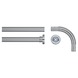 Gebogen gedeelte is van plastic en past niet in metalen buizen. Scheurt meteen bij plaatsen.