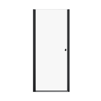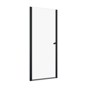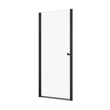 De draaideur is gemaakt van 6 mm gehard veiligheidsglas met antikalk coating. Het zwarte frame is strak afgewerkt en de schroeven zijn onzichtbaar weggewerkt, waardoor de deur er netjes en modern uitziet.