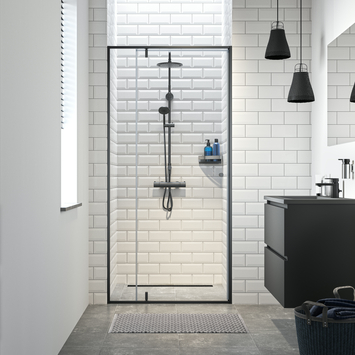 De Draaideur voor nis Contour Zwart 100x200cm is een draaideur met een minimalistisch kader dat matzwart is afgewerkt. Hierdoor past het perfect in een badkamer met zwarte accenten. De Draaideur voor nis Contour Zwart 100x200cm is een 2-delige draaideur met 6mm dik veiligheidsglas. Dit glas is voorzien van een antikalklaag, waardoor het nog langer helder blijft. In de Contour serie bestaan ook schuifdeuren of een inlooop douche. Op zoek naar andere zwarte accenten voor je badkamer, zoals een zwarte doucheset of zwarte accessoires? Ook deze zijn verkrijgbaar via onze webshop.
