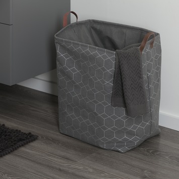 De Sealskin wasmand Geometric Grijs is de perfecte oplossing voor het opbergen van je was. Met een trendy geometrisch patroon en een stijlvolle zilverprint, geeft deze wasmand een moderne uitstraling aan elke ruimte. De praktische lederlook hengels zorgen voor een stevige grip, zodat je de mand gemakkelijk kunt verplaatsen, zelfs als hij vol is. Deze wasmand is tevens afsluitbaar, wat ideaal is om de geur van vuile was te minimaliseren. Gemaakt van stevig polyester is deze wasmand bovendien eenvoudig te onderhouden; een handwasje is al voldoende om hem schoon te houden. Een handige toevoeging aan je interieur die niet alleen functioneel is, maar ook stijlvol.